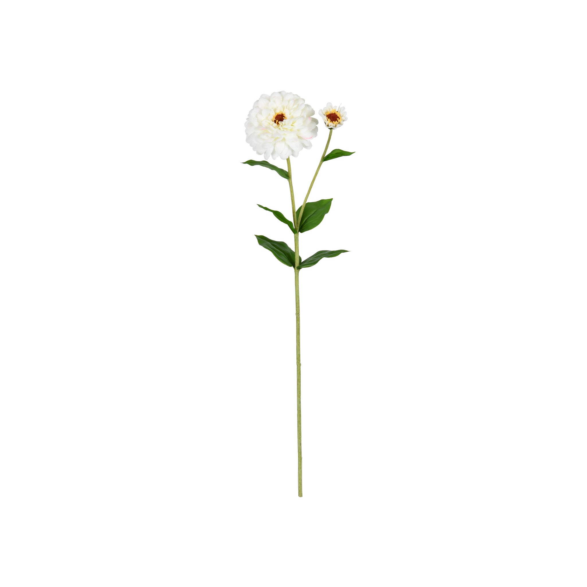 Elegant and timeless, this 26-inch White Zinnia Flower Stem adds a touch of refined beauty to any floral display. Featuring a pristine white zinnia in full bloom paired with a smaller bud, this faux stem brings understated sophistication and versatility. The soft, layered petals and vibrant green leaves create a striking yet delicate contrast, making it perfect for both classic and contemporary arrangements. Ideal for brightening up any setting, this white zinnia stem can be used alone or combined with other colors for a fresh, serene look—no maintenance required.